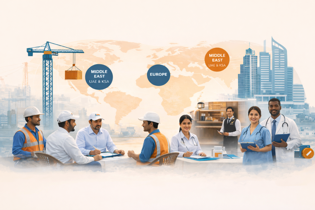 With 45+ years of experience in international recruitment, we work closely with contractors, developers, and operators to deliver job-ready, compliant manpower aligned to project timelines and local regulations. Our teams manage the complexities of cross-border hiring, from sourcing and vetting to documentation and deployment, so employers can scale operations with confidence.